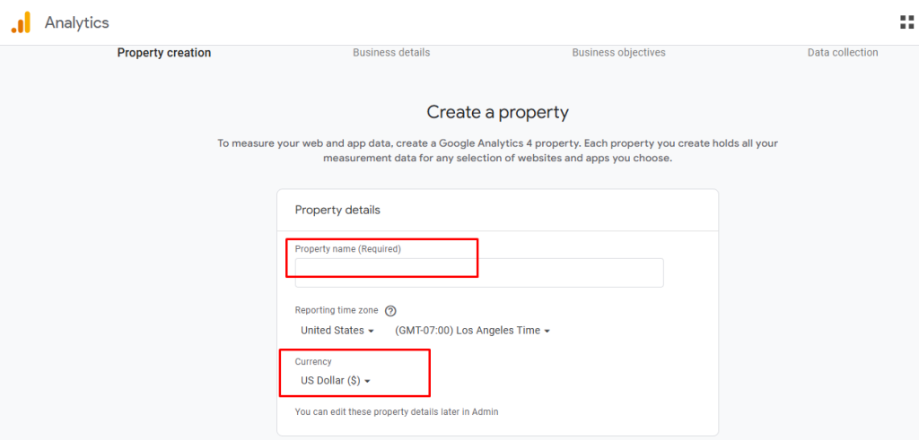 Enter a name (e.g. your business or website name), select your reporting time zone & currency. For example, choose UAE standard time if you are operating from Dubai, or choose GMT/BST if UK.
